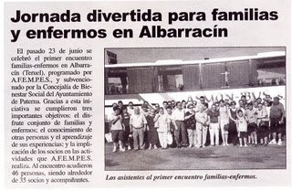 EL PASADO VIERNES 30 DE MAYO SE REUNIÓ EN EL CENTRO POLIVALENTE VALENTÍN HERNÁEZ LA COMISIÓN DE TRABAJO DE ENTIDADES CON EL OBJETIVO DE PREPARAR LA JORNADA DE CONVIVENCIA DEL PRÓXIMO 21 DE JUNIO DE 2008.EN LA REUNIÓN PARTICIPARON UN TOTAL DE 15 PERSONAS, REPRESENTANTES DE 8 ENTIDADES SOCIALES DEL MUNICIPIO, Y DOS TÉCNICOS DEL ÁREA DE BIENESTAR SOCIAL DEL AYUNTAMIENTO DE PATERNA.BAJO EL NOMBRE «II JORNADA DE CONVIVENCIA DE ENTIDADES SOCIALES DE PATERNA», SE PLANTEAN LOS SIGUIENTES OBJETIVOS:1. Favorecer el conocimiento de las entidades sociales del municipio2. Preparar una acción de manera conjunta con el fin de organizarnos y trabajar juntos3. Dar a conocecer el trabajo que las entidades realizanLA JORNADA SE REALIZARÁ EL PRÓXIMO SÁBADO 21 DE JUNIO EN EL TEATRO CAPRI Y EN LA PLAZA DEL PUEBLO, DONDE SE COMBINARÁN REPRESENTACIONES TEATRALES, POESÍA, EXPOSICIÓN DE TRABAJOS, MÚSICA, CENA,…, DESDE LAS 17 HORAS HASTA LAS 24 HORAS APROXIMADAMENTE.SE ESTÁ TRABAJANDO EN LA CONFECCIÓN DEL PROGRAMA, QUE EN BREVE «COLGAREMOS» EN ESTE BLOG.