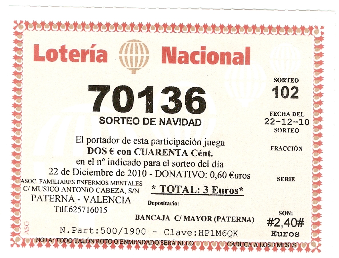YA TENEMOS LA LOTERÍA DE NAVIDAD 22 diciembre 2010 por juanje «ESTE AÑO SI QUE TOCA» «RÁPIDO QUE NOS LA QUITAN DE LAS MANOS«